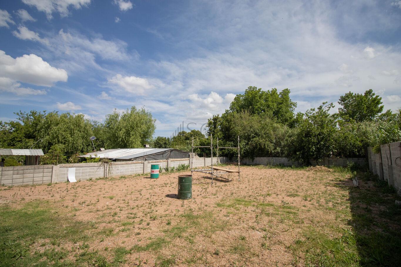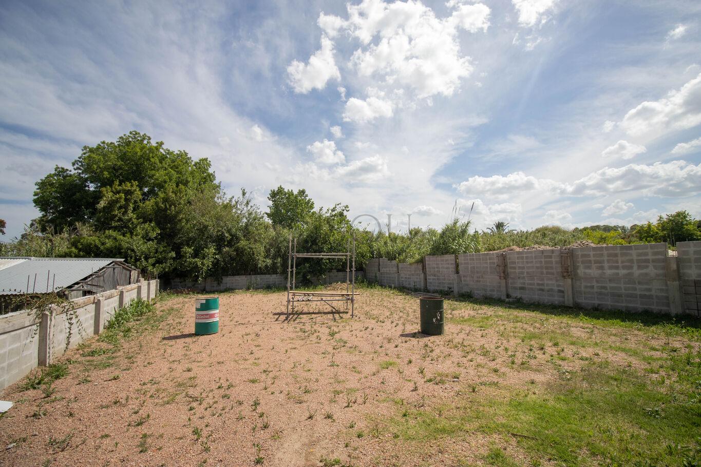 Tiene cerramiento perimetral de bloques prefabricados, entrada de hormigón de 4 metros de ancho para camiones y un baño.