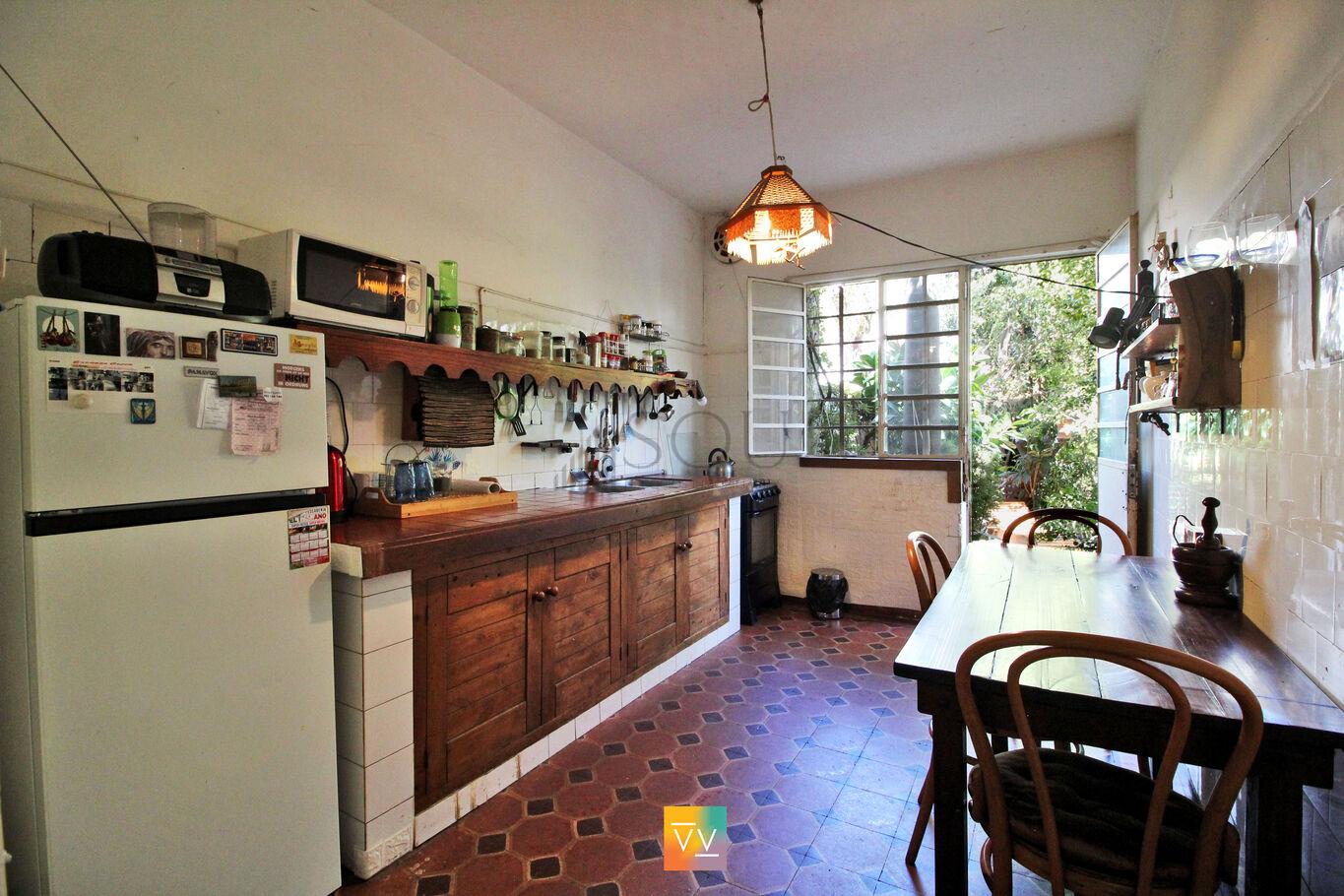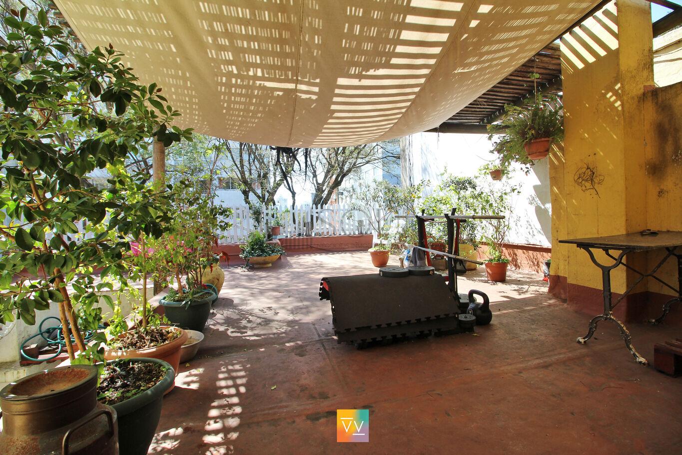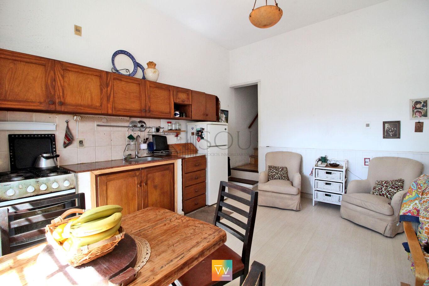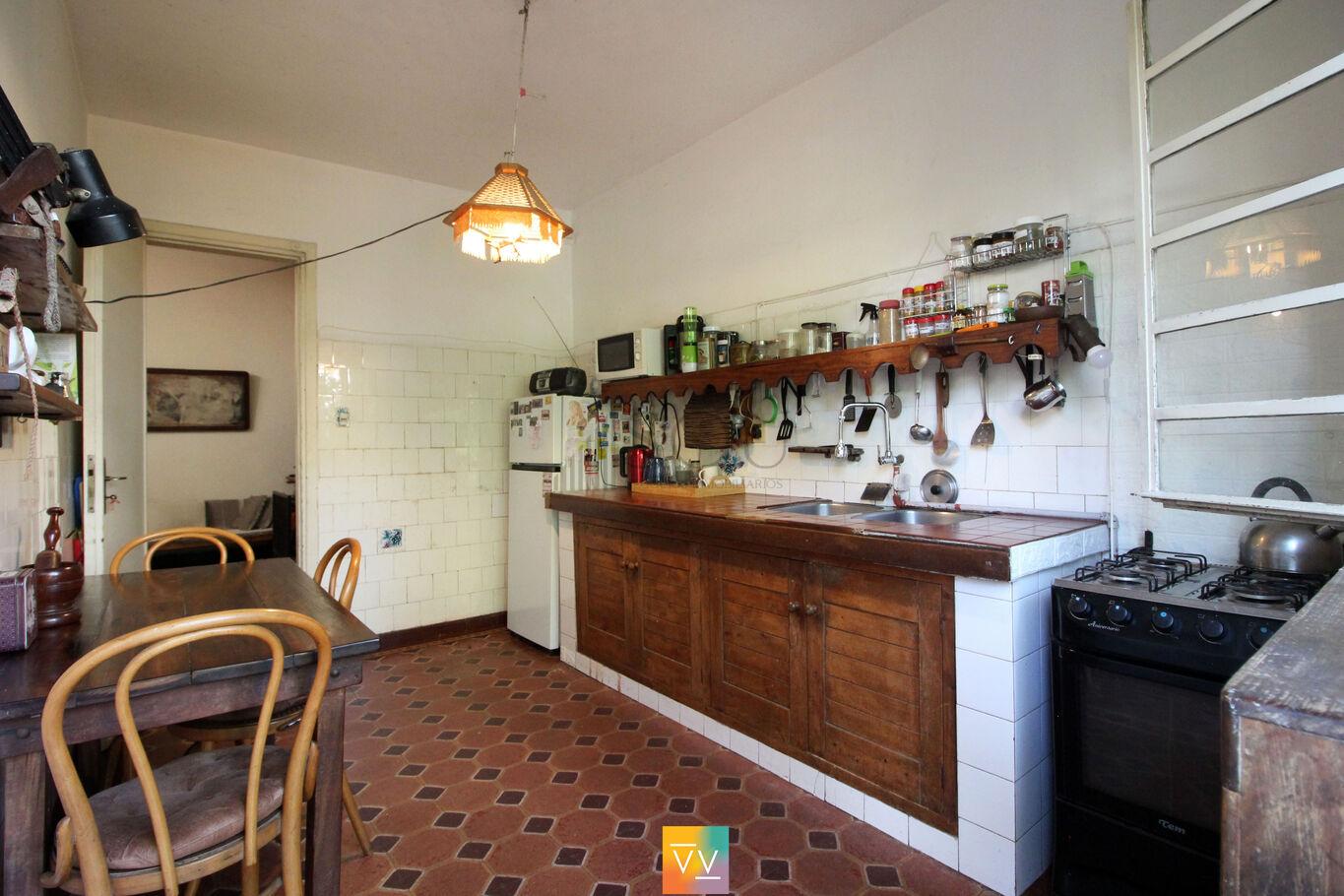 Primer piso (entrada principal): 3 dormitorios, 2 baños completos, dos cocinas (una definida + otra integrada con living-comedor).