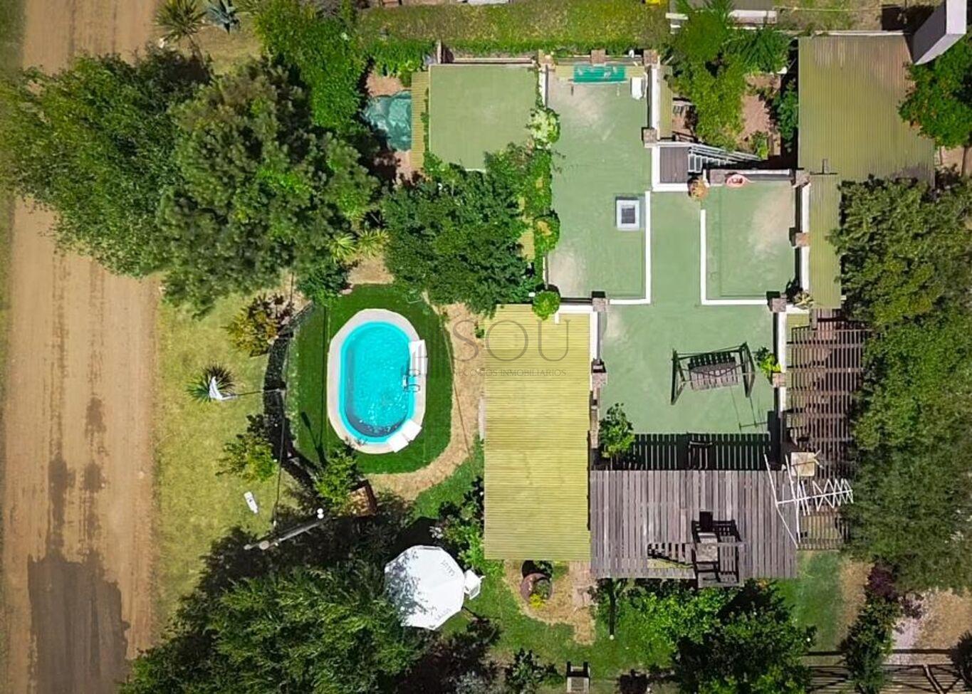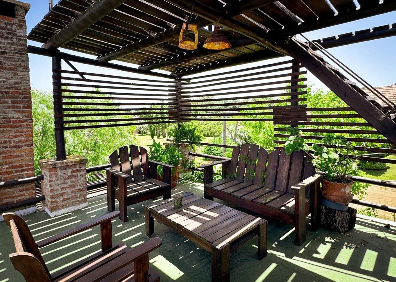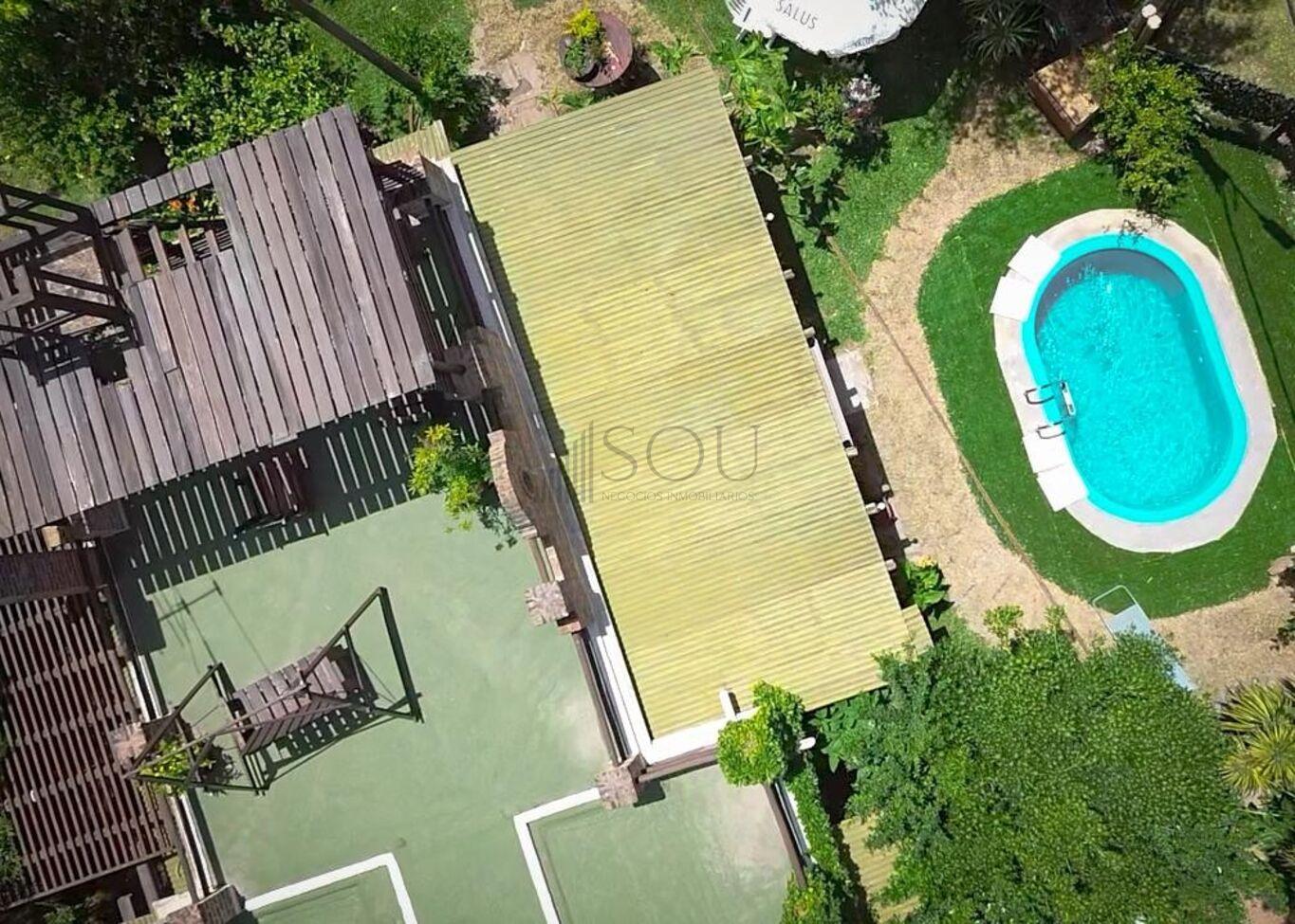 La casa tiene deck de madera con sillones al frente, juegos infantiles y parrillero techado. En la azotea posee un juego de living de exterior con vista despejada.