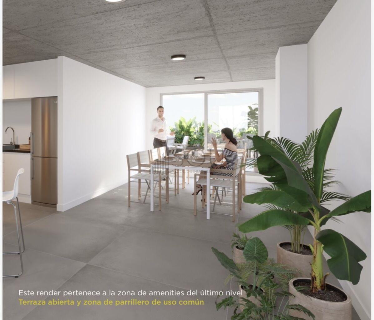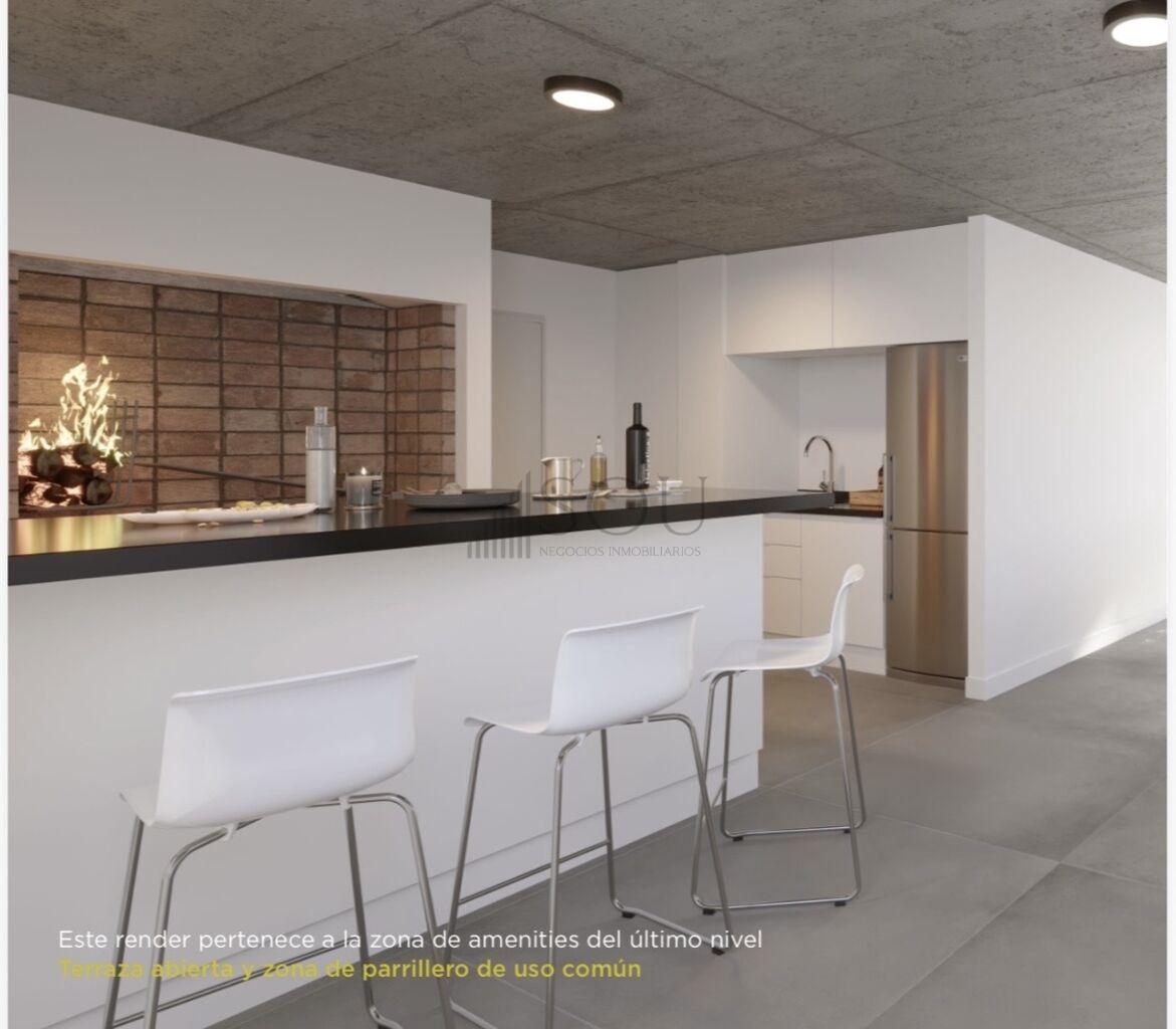 Amenities en azotea: Salón cerrado con parrillero, kitchenette, terrazas y lavadero.