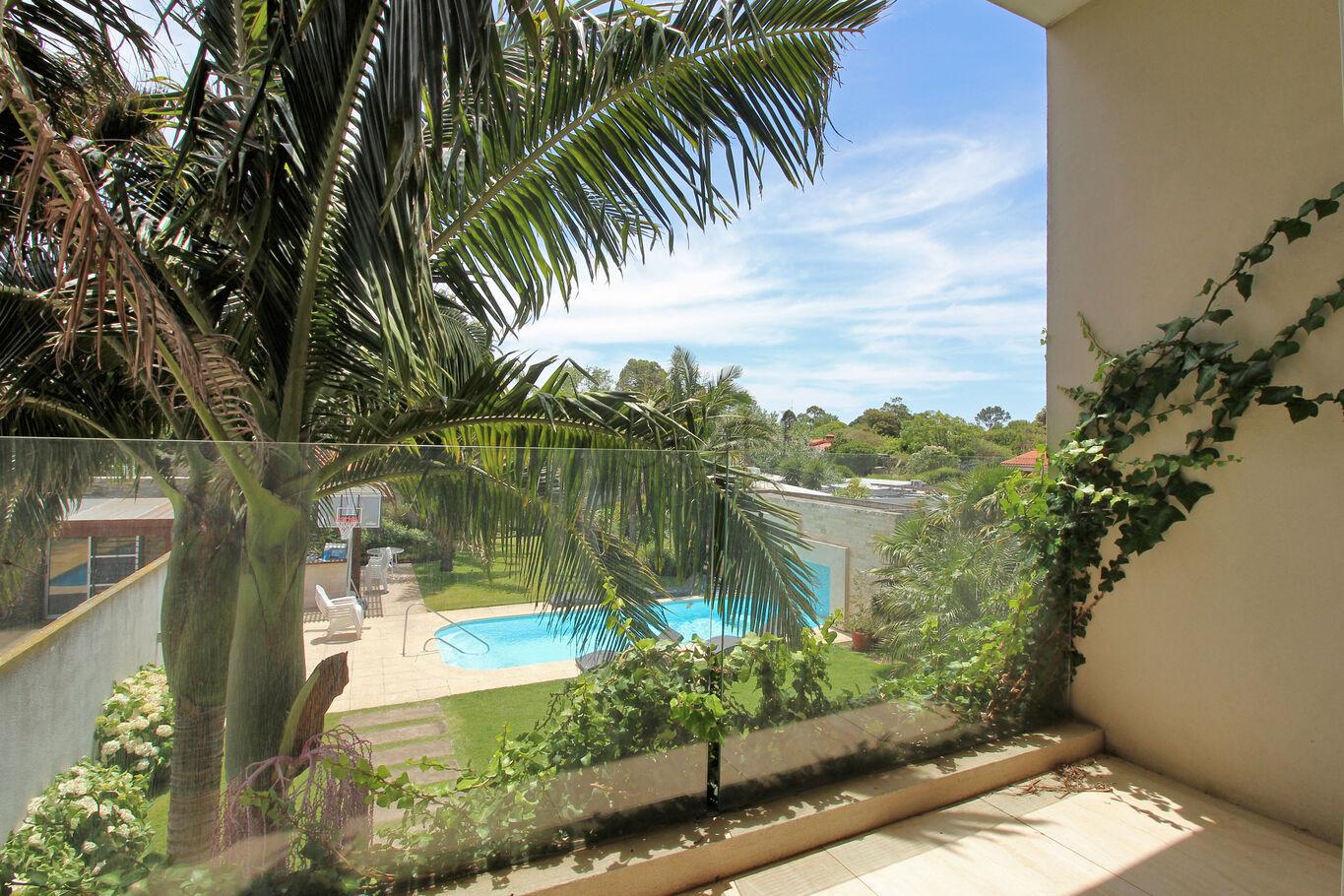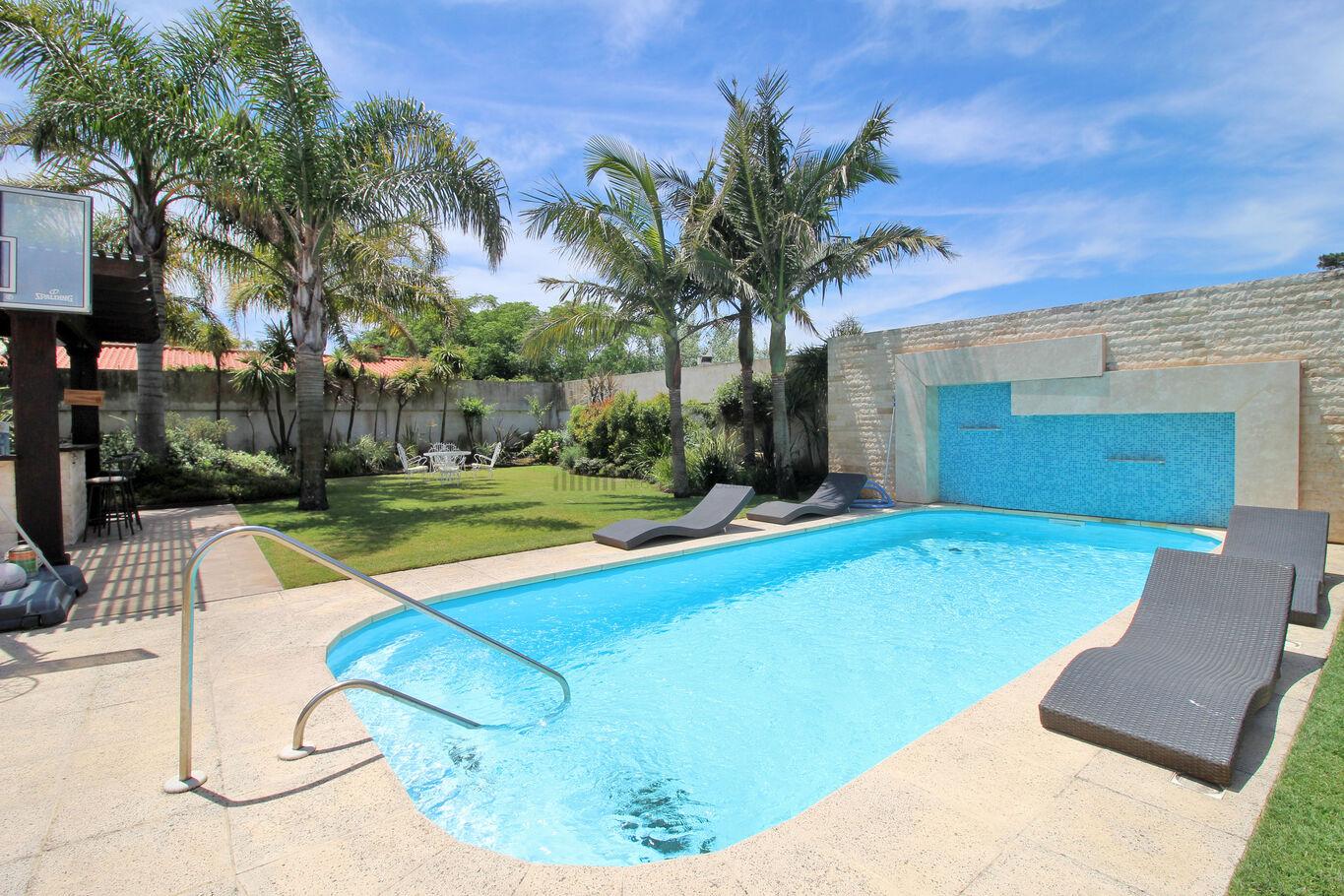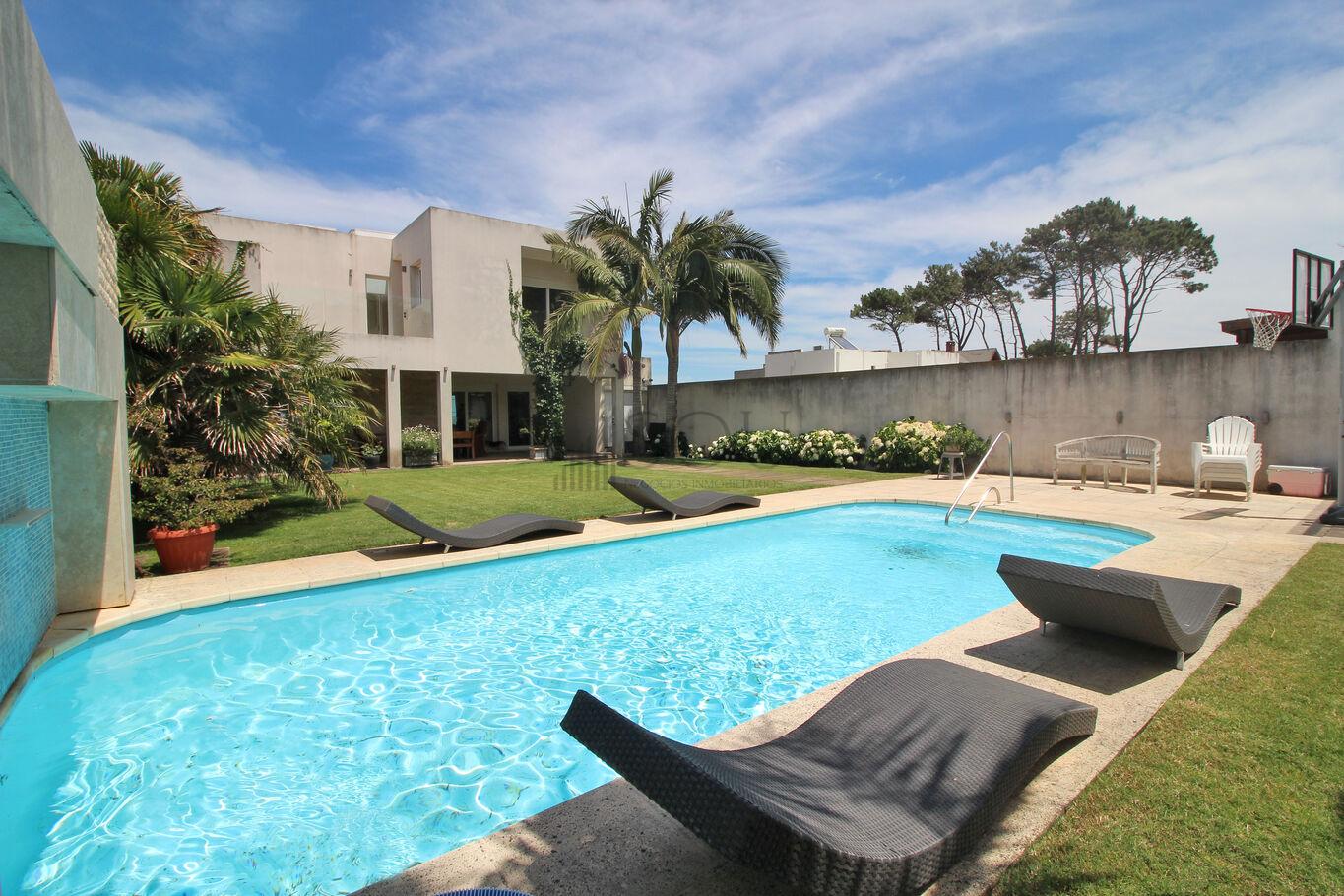 La casa se desarrolla en tres plantas y cuenta con un garaje cerrado para dos vehículos además de espacio exterior para estacionar dos autos adicionales. En el exterior se destacan la piscina, baño exterior, un parrillero techado totalmente equipado y un jardín parquizado y arbolado, mantenido en óptimas condiciones.