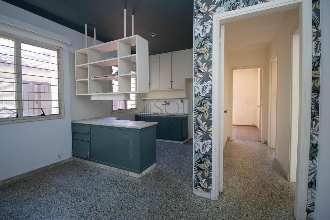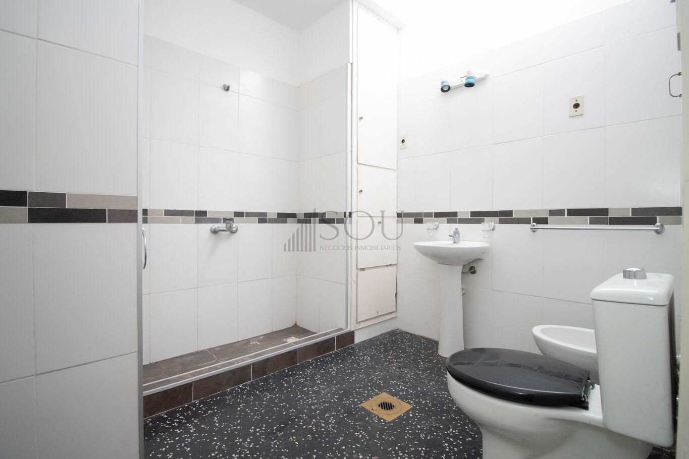 Cocina de 2.50x2.90m integrada con un comedor diario de 2.00x3.60m con mucha luz y vista oeste, revestida en azulejos, mesada en mármol y muebles aéreos y bajo mesada de época. Pasillo amplio de 3m2 que distribuye a baño completo reciclado en la década de los 2000, de medidas 2.00x2.40 aproximadamente en buen estado de conservación.