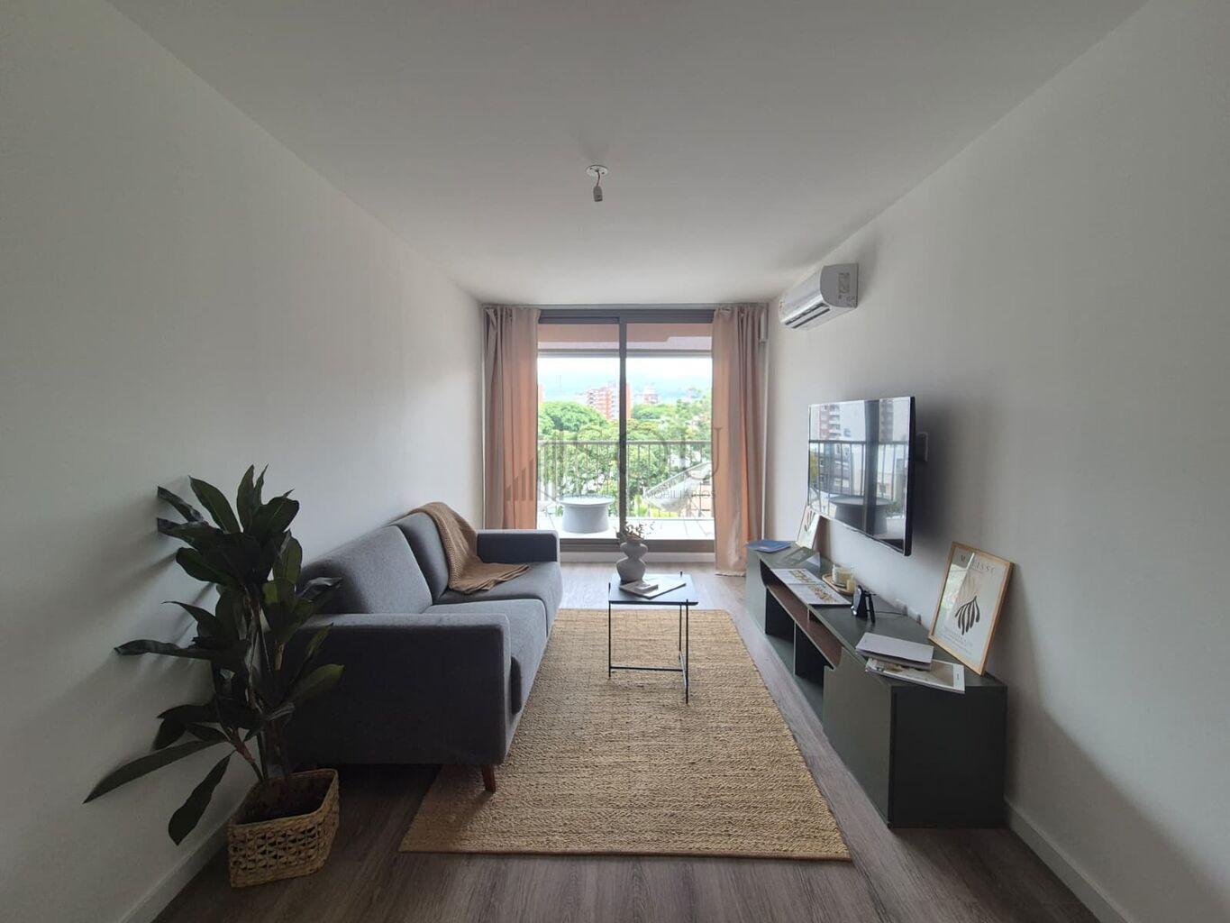 Edificio moderno con tecnología domótica, paneles solares, jardines y terrazas con mucho verde. Tiene certificación de sustentabilidad EDGE